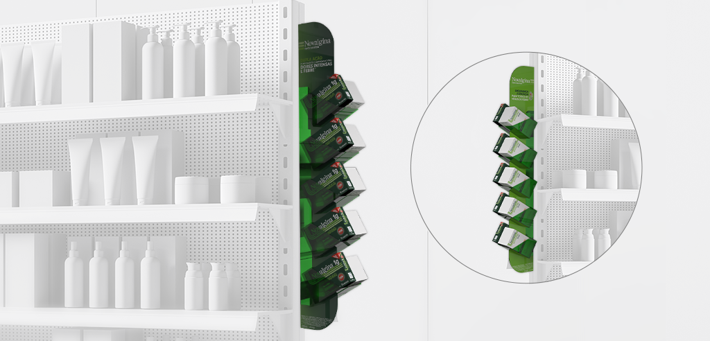 Produto disposto atrás do balcão das farmácias.